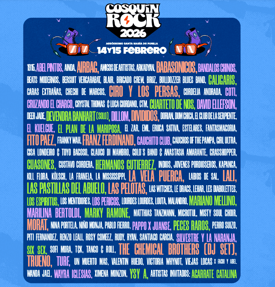 El festival se realizará el 14 y 15 de febrero en Córdoba, con una grilla que incluye clásicos nacionales, emergentes y figuras internacionales como Franz Ferdinand y The Chemical Brothers.