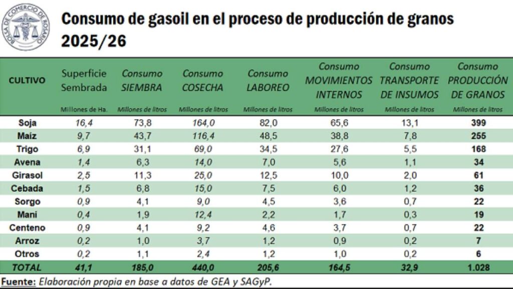 Este volumen de combustible, indispensable para mover la maquinaria y la logística del sector, implicará un costo total estimado en 2.579 millones de dólares, evidenciando la magnitud del operativo productivo que se avecina.