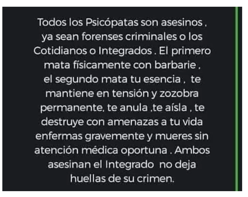 La víctima había utilizado sus plataformas digitales para dar señales de su temor. En febrero del año pasado, Luna Giardina publicó un mensaje categórico que ahora cobra un significado macabro: “Todos los psicópatas son asesinos”. Días antes de ser asesinada de un disparo en la cabeza junto a su madre, la joven había escrito: “Por tu propia salud mental, toma las señales confusas de las personas como un rotundo no”, y compartió una foto con su hijo bajo la leyenda: “Las madres no tienen plan B”.