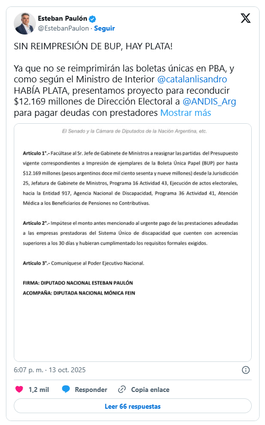 El bloque Encuentro Federal presentó un proyecto para reasignar los $12.169 millones de la no reimpresión de las boletas a la ANDIS. La iniciativa busca saldar deudas urgentes con prestadores de discapacidad, forzando al Gobierno a redirigir fondos no ejecutados.