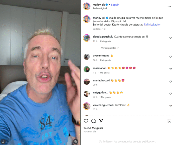 La cirugía fue breve, con una duración de aproximadamente siete minutos. Marley compartió en Instagram videos e imágenes del procedimiento, mostrando una actitud relajada y su característico sentido del humor.