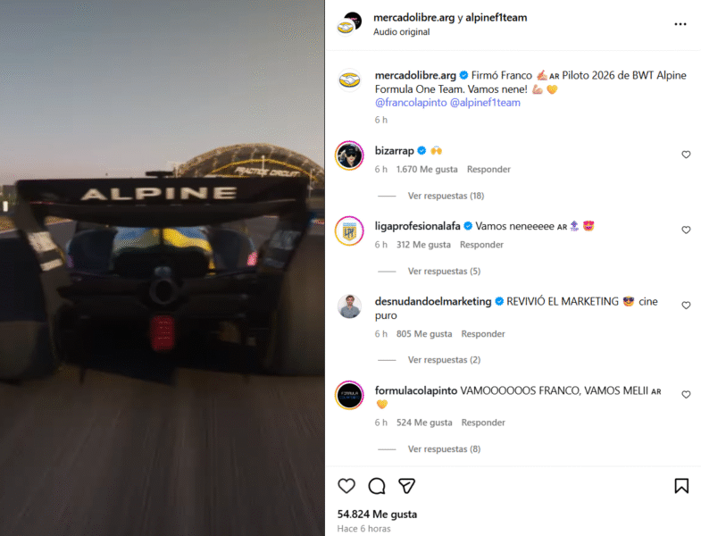 Por último, Mercado Libre, que es el principal sponsor de Colapinto, compartió un video del argentino en sus redes sociales comunicando la noticia de que firmó para el 2026.