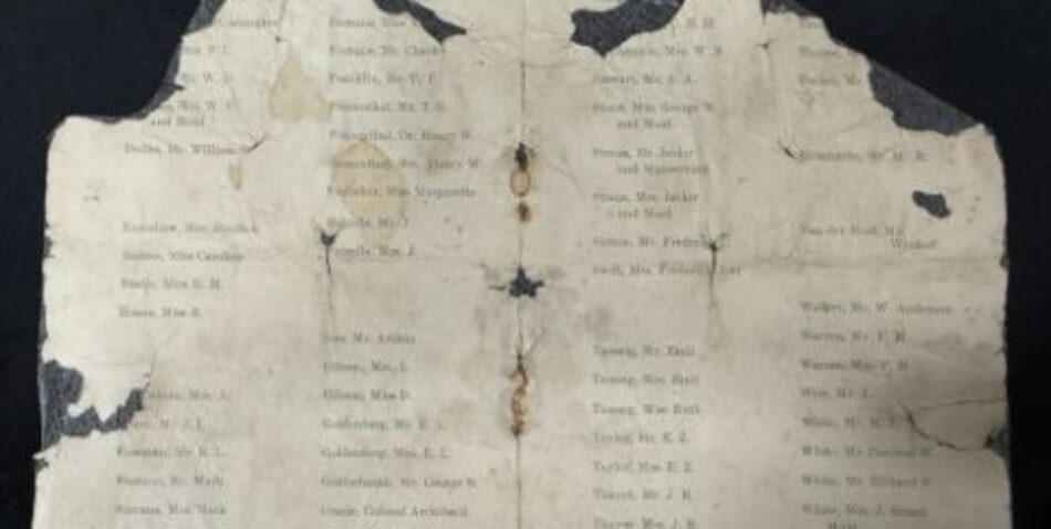 Entre las piezas más emblemáticas figura un documento histórico con instrucciones y datos para los pasajeros del transatlántico, incluyendo tarifas del telégrafo inalámbrico, reglas para solicitar sillas y mantas, y anotaciones sobre la ruta del barco que nunca llegó a concretarse. La condición del papel, manchado y deteriorado por el tiempo y las aguas del Atlántico Norte, evidencia la magnitud de la tragedia y el paso del tiempo.
