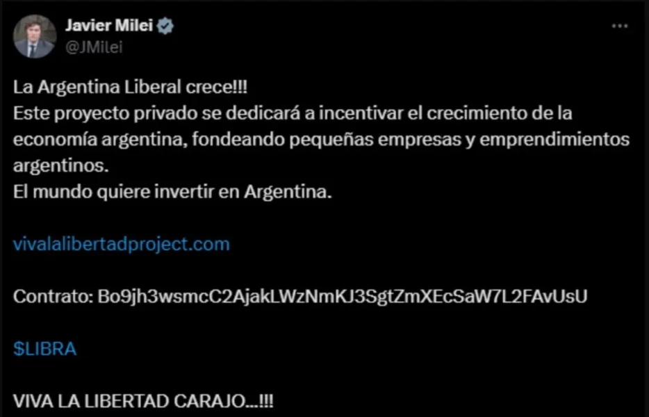 Entre las evidencias expuestas, destaca que el presidente publicó en su cuenta oficial de la red social X un número de contrato privado vinculado al token $LIBRA, sin explicar cómo obtuvo esa información. Para la comisión, esto refuerza la hipótesis de un vínculo directo y previo entre Milei y los creadores de la criptomoneda.