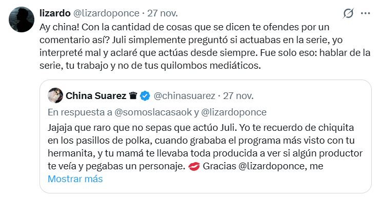 En defensa de Julieta, su entorno y figuras cercanas como Lizardo Ponce aclararon que la joven solo preguntó sobre la participación de Suárez en la serie, sin intención de cuestionar su rol como actriz.