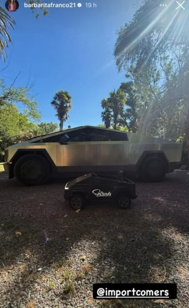 La mañana del 24 de diciembre, la modelo Barby Franco exhibió a través de sus redes sociales el vehículo que el abogado Fernando Burlando estacionó frente a su residencia. Se trata de un Tesla Cybertruck, una pick up eléctrica de estética futurista que no se comercializa de forma oficial en el mercado nacional.