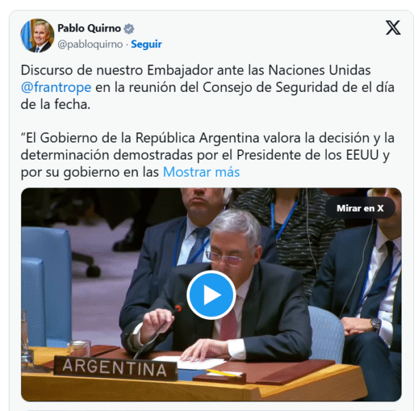 Argentina ratificó ante la ONU su apoyo al operativo de Trump contra Maduro, aunque omitió el reclamo por la asunción de González Urrutia. El Gobierno busca alinearse con la tutela estadounidense mientras la justicia local solicita la extradición del exmandatario.