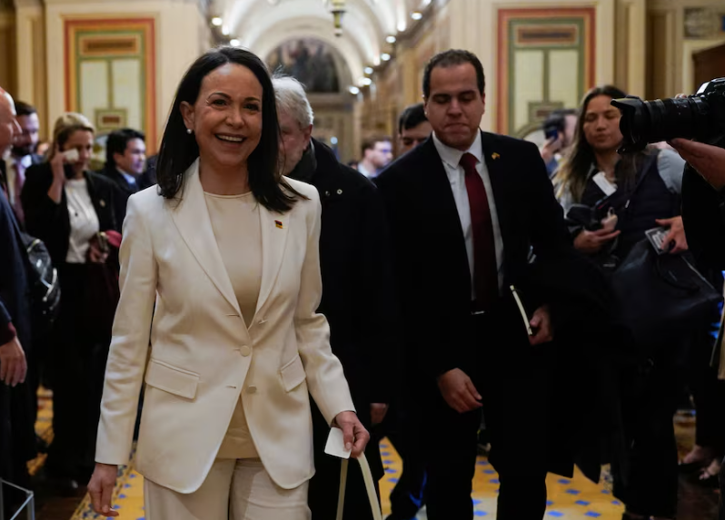 A su salida de la Casa Blanca, la ganadora del Premio Nobel de la Paz calificó la reunión como estupenda. Ante un grupo de ciudadanos venezolanos, la dirigente afirmó que el país cuenta con el respaldo de Trump para recuperar las libertades democráticas y solucionar la crisis en los sistemas de salud y educación.