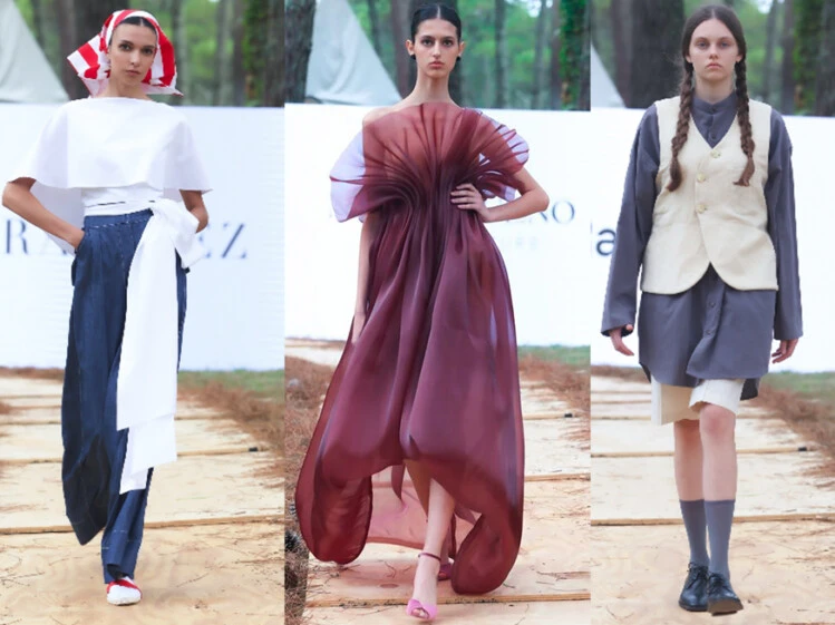 La alta costura estuvo representada por Nuria Bueno, quien presentó diez diseños inspirados en la estética de Arles. Su colección mostró siluetas sobrias con volúmenes definidos y líneas puras, influenciadas por la escuela de Balenciaga. La diseñadora buscó establecer un diálogo entre la estructura de los vestidos y la flexibilidad de los géneros seleccionados para la temporada.