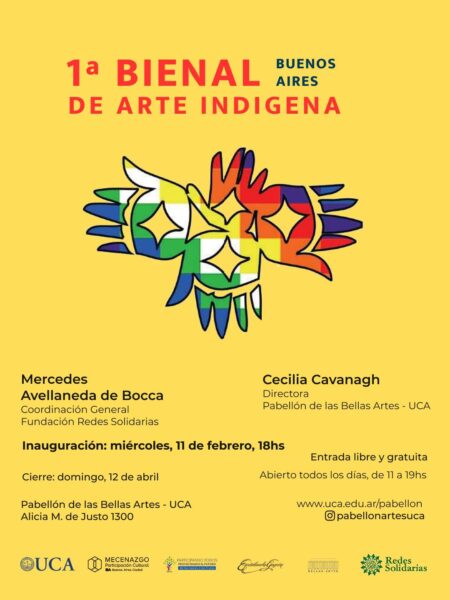 El Pabellón de las Bellas Artes de la Universidad Católica Argentina (UCA) abrió las puertas de la Primera Bienal de Arte Indígena de Buenos Aires. El encuentro, organizado por la Fundación Redes Solidarias y la dirección del espacio expositivo, reúne piezas de artistas de Argentina, Perú, Paraguay, Brasil y Chile. La exhibición permanecerá vigente hasta el 12 de abril en la zona de Puerto Madero.