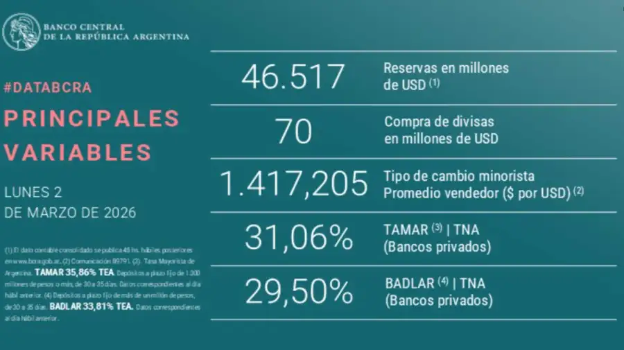 El Banco Central de la República Argentina (BCRA) cerró una jornada de alta complejidad financiera con un saldo contable a favor. La entidad dirigida por Santiago Bausili logró que las reservas internacionales brutas escalaran hasta los US$ 46.517 millones.
