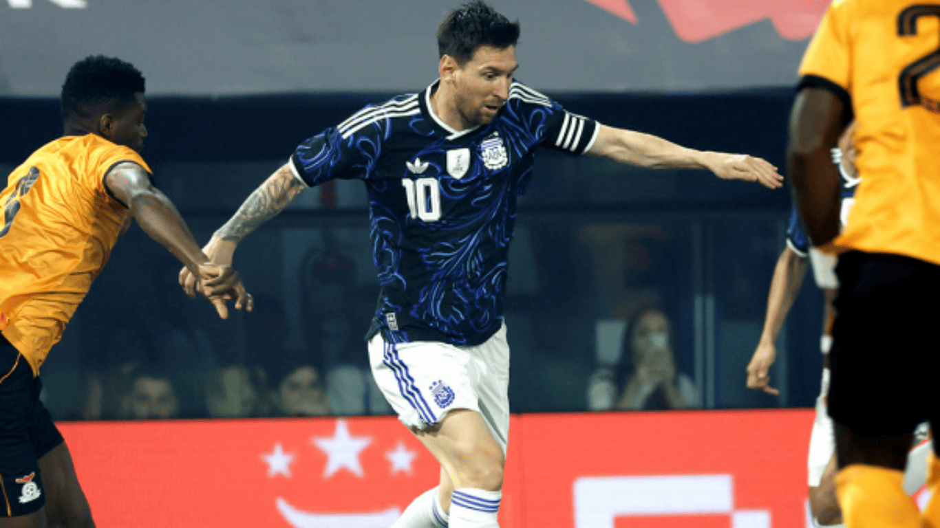 Cerca del cierre de la primera etapa, a los 43 minutos, llegó el segundo tanto. Messi inició una maniobra colectiva que incluyó una pared con Alexis Mac Allister para definir al primer palo del arquero William Mwanza.