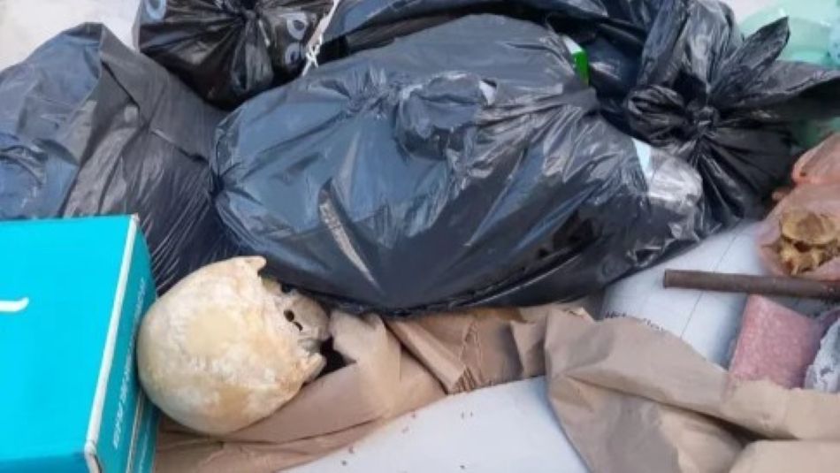 Un vecino alertó a la policía tras ver el resto óseo entre la basura. Investigan si era material de estudio o producto de un homicido.