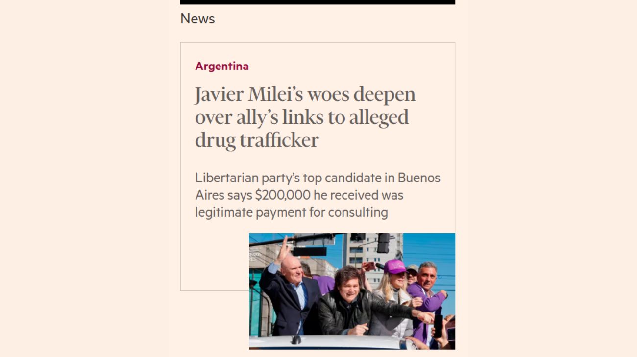 La publicación británica especializada en economía analiza las repercusiones de las acusaciones que pesan sobre el candidato de La Libertad Avanza en la provincia de Buenos Aires.
