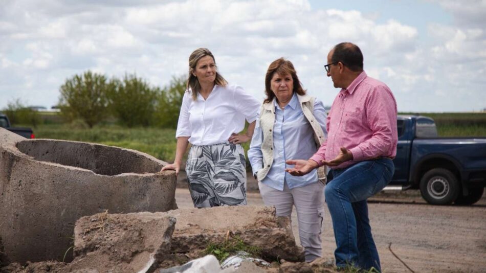La ministra de Seguridad mantuvo reuniones con productores agropecuarios en la municipalidad de 9 de Julio y luego en la Sociedad Rural local, en medio de un escenario de inundaciones.