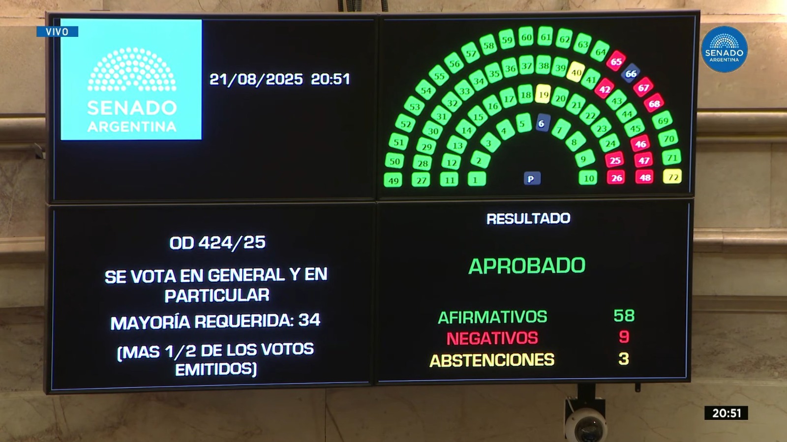 Con 58 votos a favor, la Cámara Alta aprobó la ley que repone fondos y salarios a las universidades, una medida que el presidente Javier Milei ha prometido vetar.
