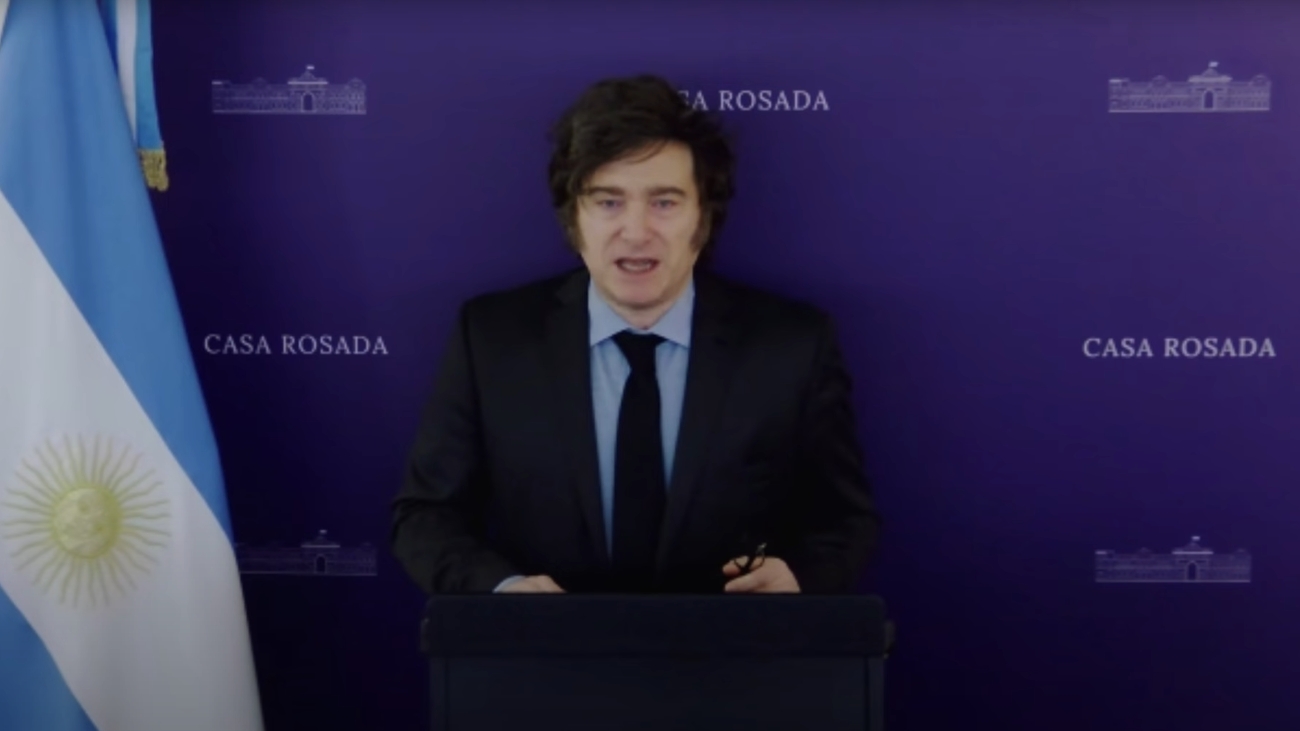 El presidente argentino participó a través de un mensaje por video en el encuentro del partido de derecha español Vox tras haber cancelado su viaje a España.
